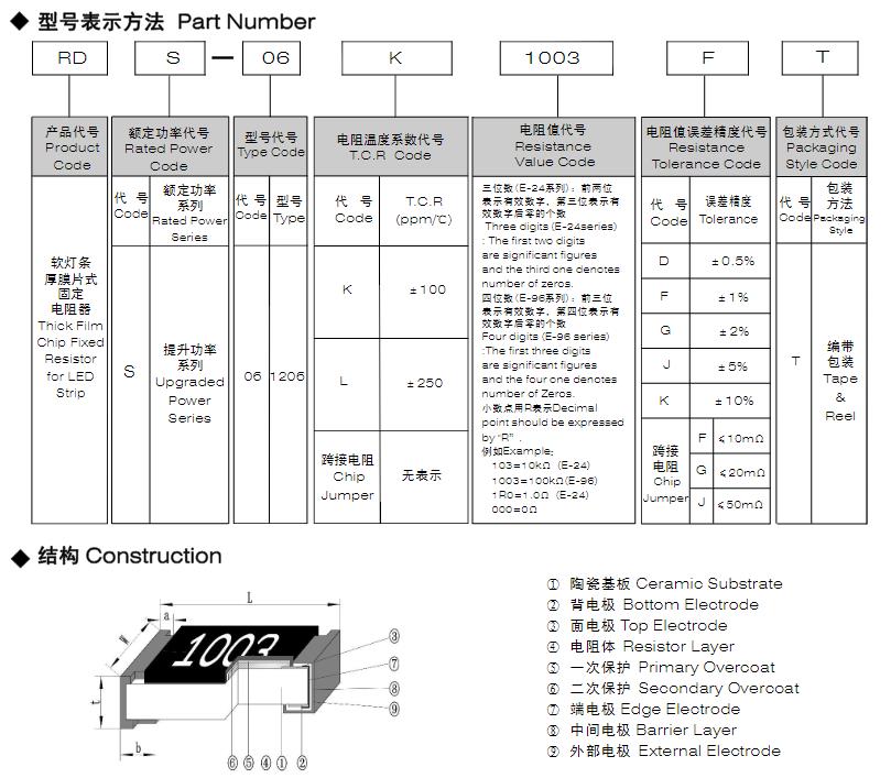風(fēng)華軟燈條厚膜片式固定電阻器型號(hào)命名規(guī)則: