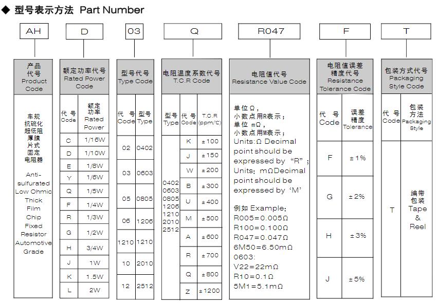 風(fēng)華高科車規(guī)抗硫化超低阻厚膜片式固定電阻器型號命名規(guī)則: