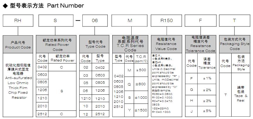 風(fēng)華高科抗硫化超低阻值厚膜片式固定電阻器型號命名規(guī)則: