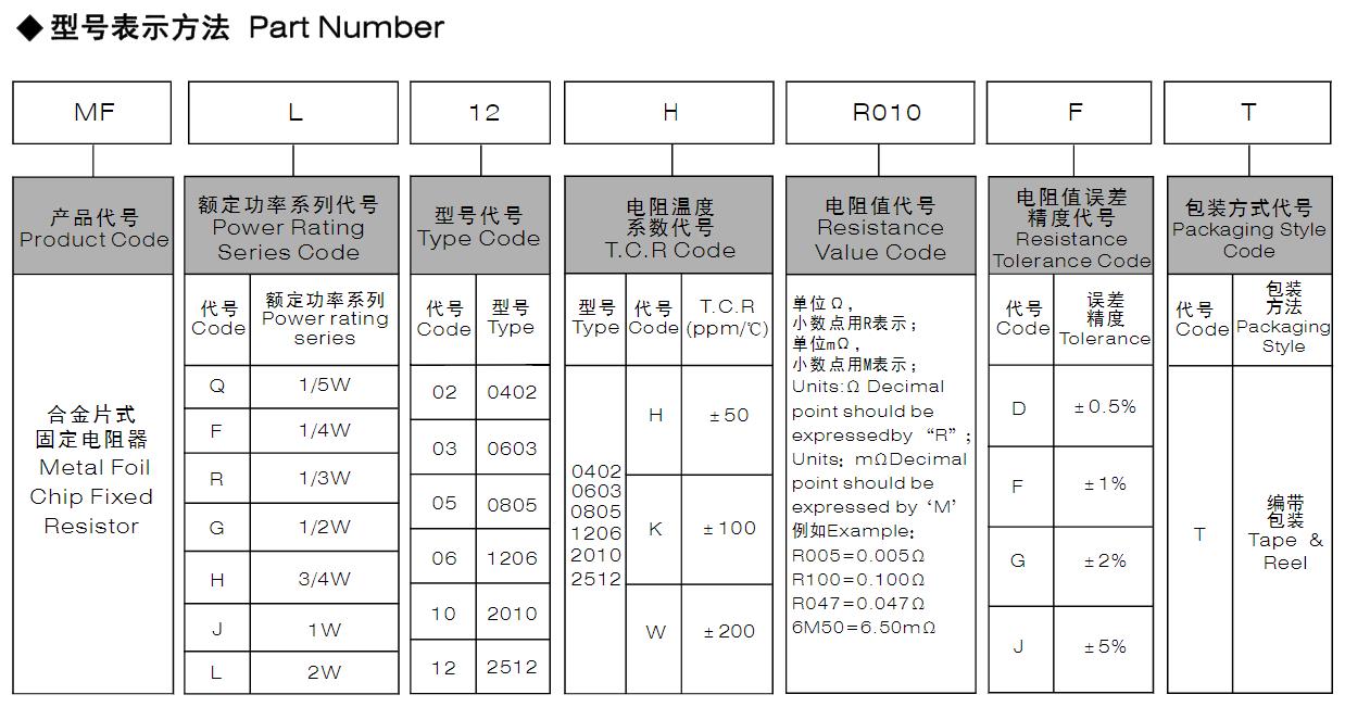 風華高科合金片式固定電阻器型號命名規(guī)則: