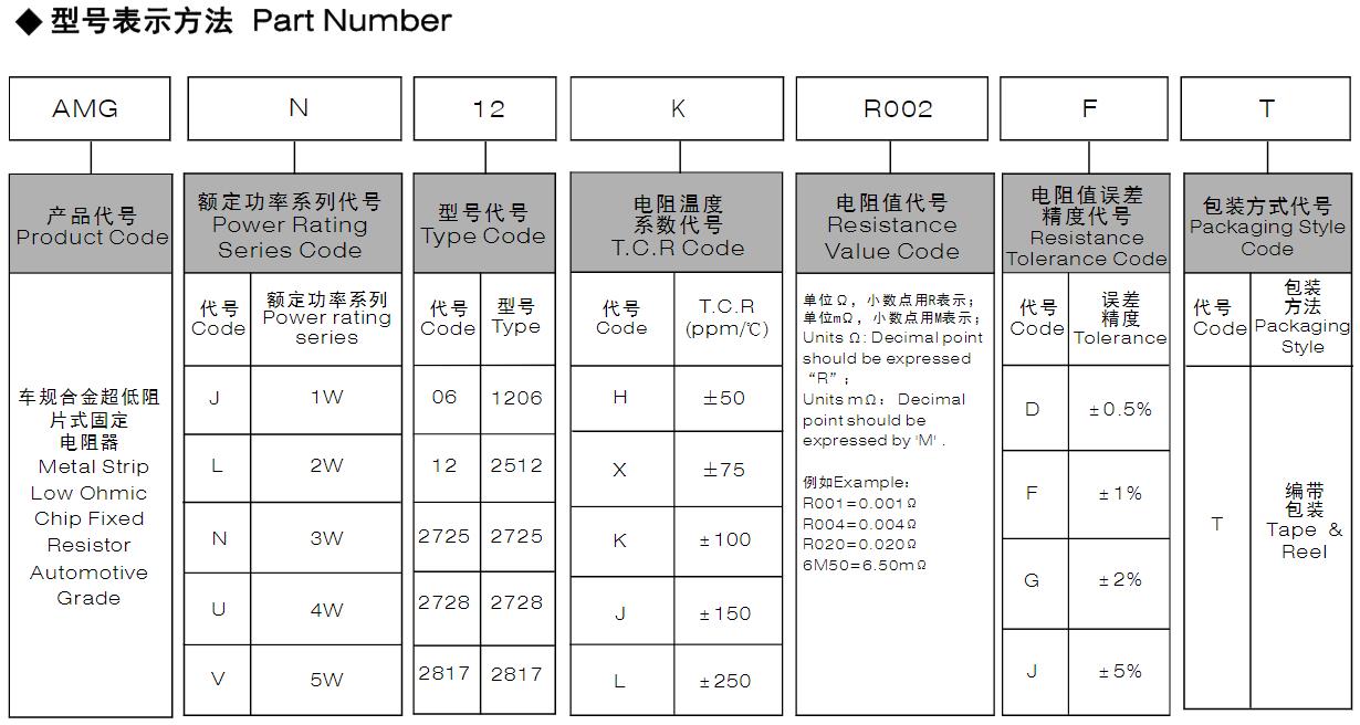 風(fēng)華高科車規(guī)合金超低阻值片式固定電阻器型號命名規(guī)則: