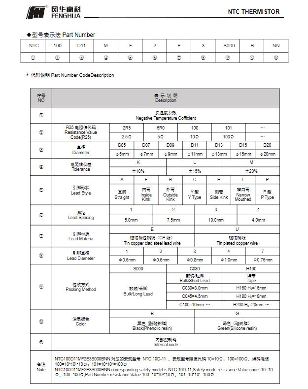 風(fēng)華高科NTC熱敏電阻命名規(guī)則: