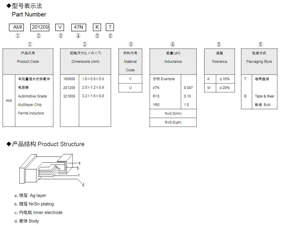 風華高科車規(guī)疊層片式鐵氧體電感器命名規(guī)則: