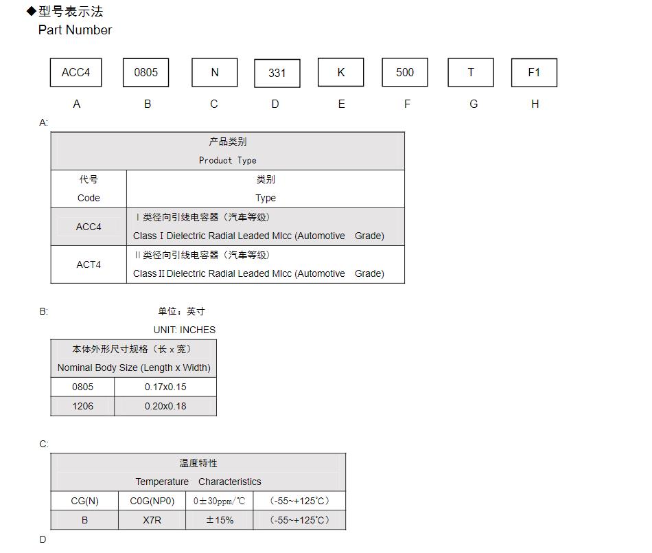 風華高科車規(guī)徑向引線多層陶瓷電容器型號命名規(guī)則:
