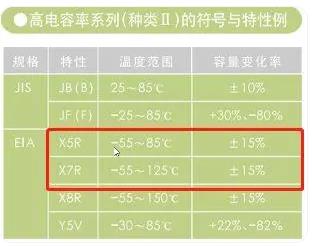 X5R電容的電容值變化范圍為±15%,而X7R電容的電容值變化范圍也為±15%。兩者在電容值的穩(wěn)定性上沒有什么顯著的區(qū)別。