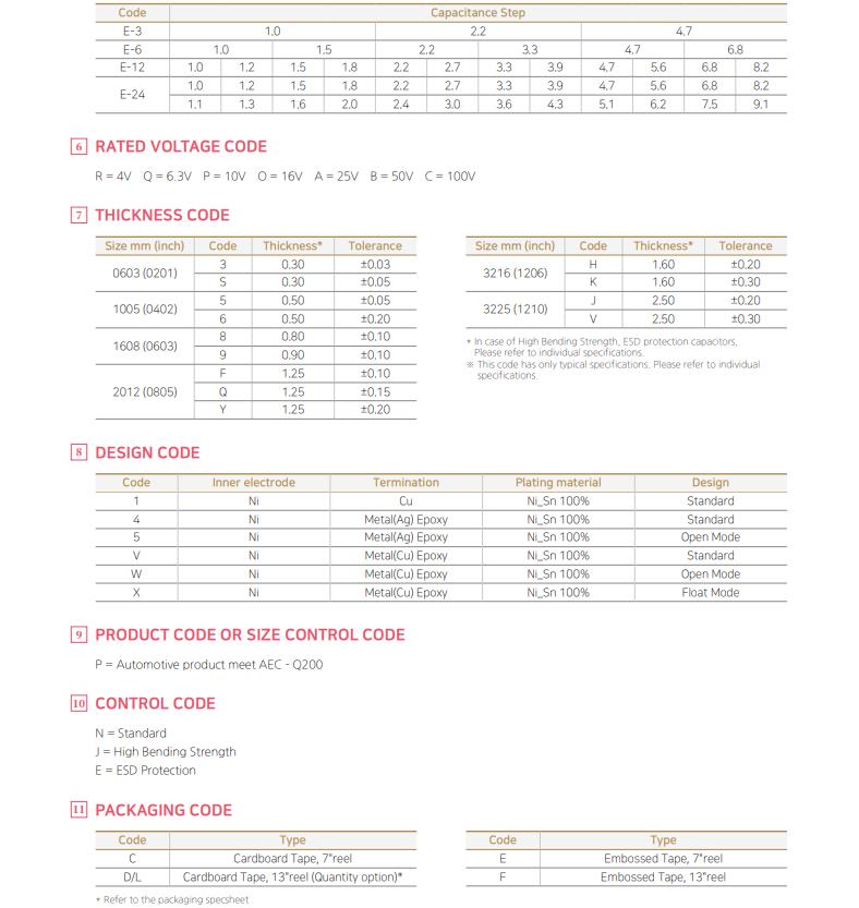 三星貼片車(chē)規(guī)電容料號(hào)命名規(guī)則對(duì)照表