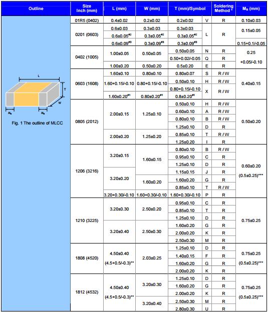 0201,0402,0603,0805,1206為常見封裝尺寸的華科貼片電容,容量范圍一般在0.5pF~1uF。1210,1812,1825,2225, 3012、3035為大規(guī)格華科貼片電容,容量范圍在1uF~100uF