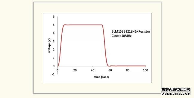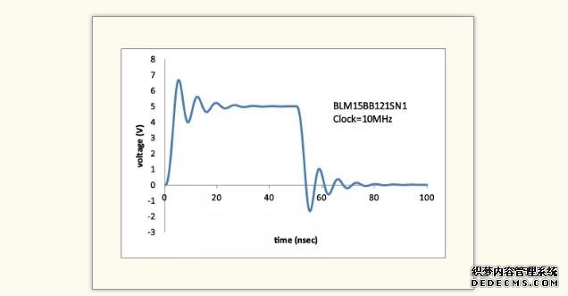 如果在數(shù)字電路中使用鐵氧體磁珠,則可能會(huì)發(fā)生波形中出現(xiàn)過沖和下沖的情況。(圖2)