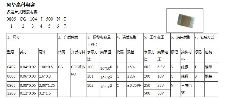 2、風華電容介質種類:常用CG(COG或NPO)、B(X7R)、F(Y5V)、X(X5R)、E(Z5U)
