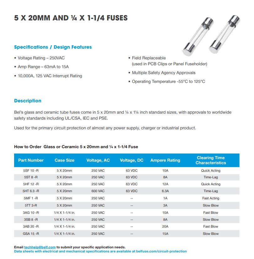 BEL的玻璃和陶瓷管保險絲有5 x 20毫米,?x 1英寸標(biāo)準(zhǔn)尺寸,批準(zhǔn)在全球范圍內(nèi)