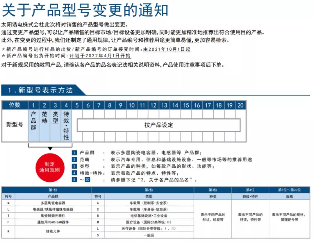 TAIYO YUDEN太陽誘電株式會社此次將對銷售的產(chǎn)品型號做出變更。
