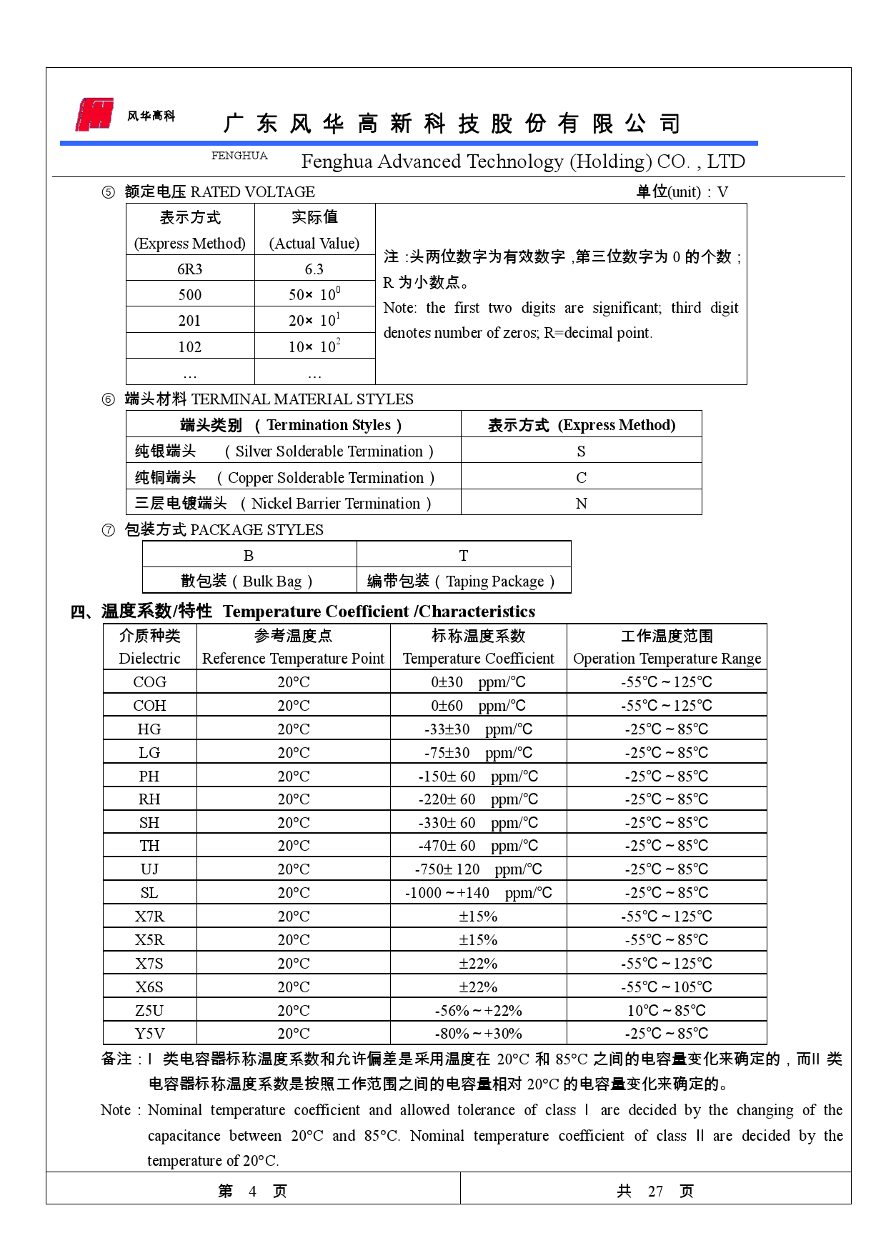 風華貼片電容型號對照表