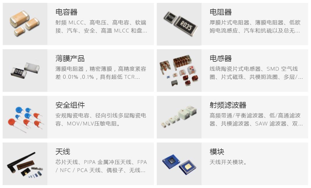安規陶瓷電容、徑向引線多層陶瓷電容、MOV/MLV壓敏電阻。