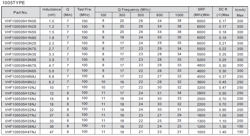 電感范圍:1nH~220nH