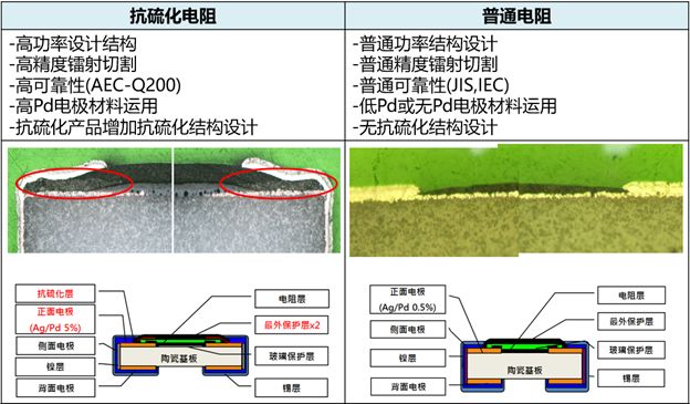 2、抗硫化電阻和普通電阻設計上的區別