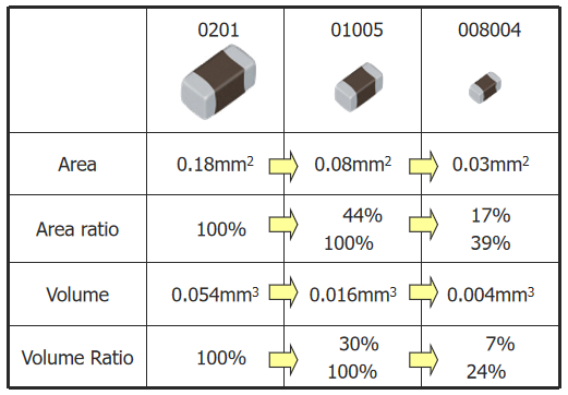 太陽誘電推出超小型電容(以008004英寸的產(chǎn)品)為例進行說明: