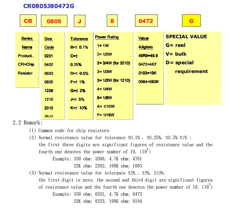 光頡貼片電阻料號編碼: