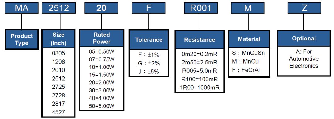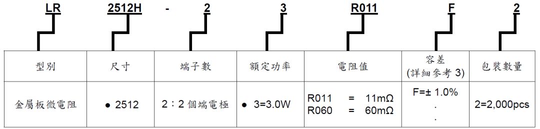 旺詮貼片合金電阻料號編碼: