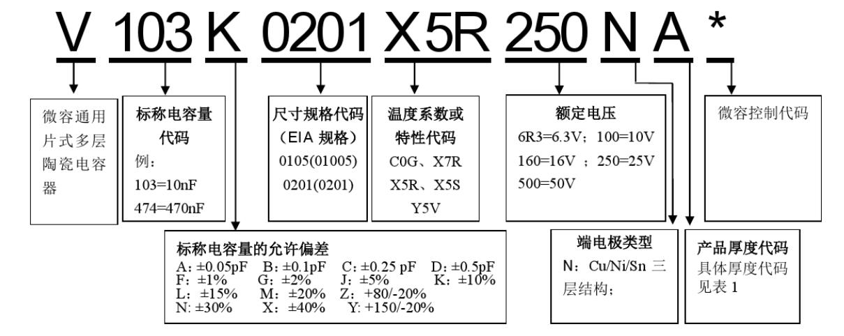 VIIYONG(微容)電容品牌編碼規則對照表: