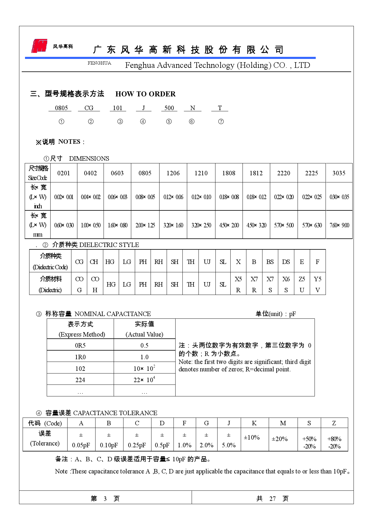 風華邦科貼片電容命名規則